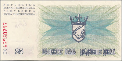 Bósnia e Herzegovina, 25 Dinara de 1992, pick#11a